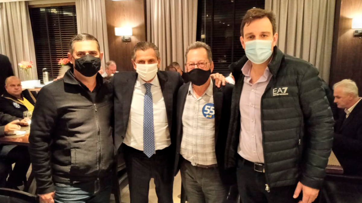 Na foto: o prefeito Anibal Brambila, presidente do PSD de Maracajá, Geraldo Leandro, deputado estadual Júlio Garcia e o deputado federal Ricardo Guidi.