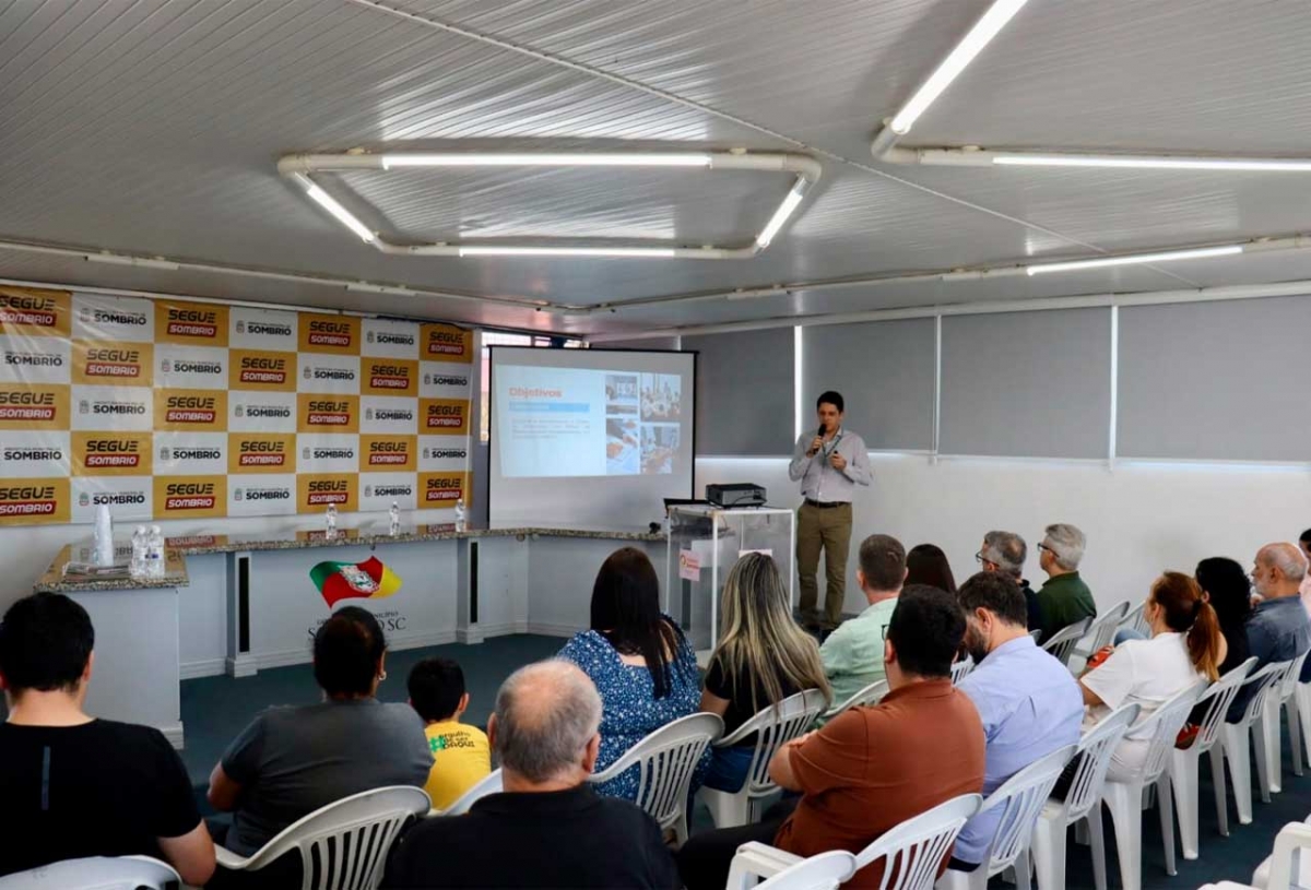 O auditório da Prefeitura de Sombrio recebeu, na tarde de ontem, 4, a apresentação da estrutura de governança do Plano de Desenvolvimento Socioeconômico do município. Esta etapa que marca o início da implementação oficial do documento construído em parceria entre a Prefeitura e a Unesc. A reunião foi mediada pelo professor e mestre Fernando Locks Machado, responsável por conduzir o processo técnico de análise e organização da governança.