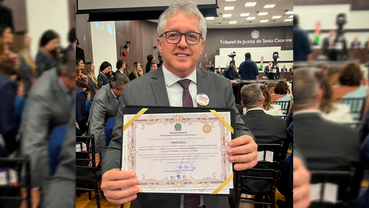 O Sul de Santa Catarina ganhou oficialmente um importante representante na Assembleia Legislativa. O empresário e ex-prefeito de Turvo, Tiago Zilli (MDB), recebeu ontem, segunda-feira (19), o diploma, que oficializa o resultado da eleição e dá direito a assumir o mandato, em 1º de fevereiro de 2022.