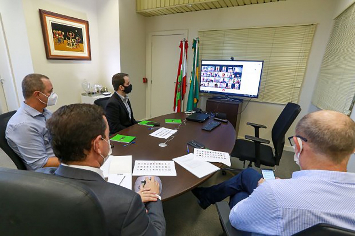 O governador Carlos Moisés se reuniu nesta quarta-feira, 10, com prefeitos e autoridades para avaliar e estabelecer medidas para o enfrentamento da pandemia. Um novo decreto com regras vigentes para os próximos dias deverá ser publicado ainda nesta quarta-feira.