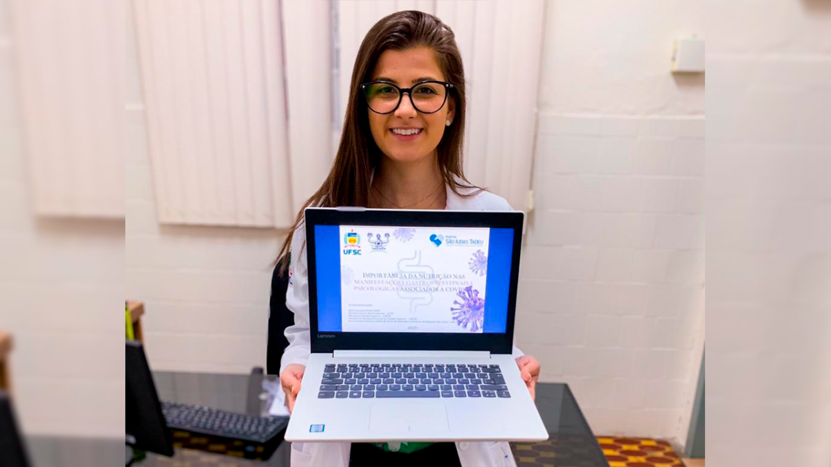 Na oportunidade relatou sobre sua proposta de pesquisa que está sendo desenvolvida em seu doutorado em Neurociências pela Universidade Federal de Santa Catarina – UFSC e que tem como objetivo principal investigar os sintomas gastrointestinais e psicológicos de pacientes durante a internação hospitalar por COVID-19.