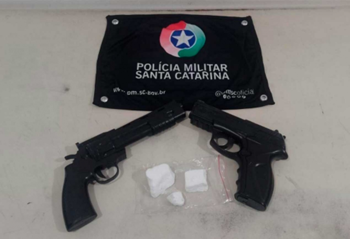 A Polícia Militar apreendeu um adolescente de 17 anos por tráfico de drogas e posse de simulacros de arma de fogo na noite desta quinta-feira (5), por volta das 19h05, no bairro Vila São Cristóvão, em Santa Rosa do Sul.