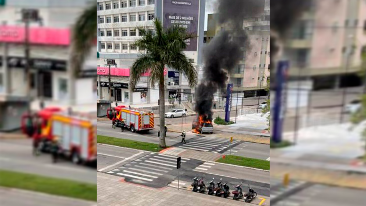 Um carro pegou fogo no início da tarde dessa sexta-feira, dia 1º, no centro de Tubarão. O fato ocorreu por volta de 12h20, na Avenida Marcolino Martins Cabral.