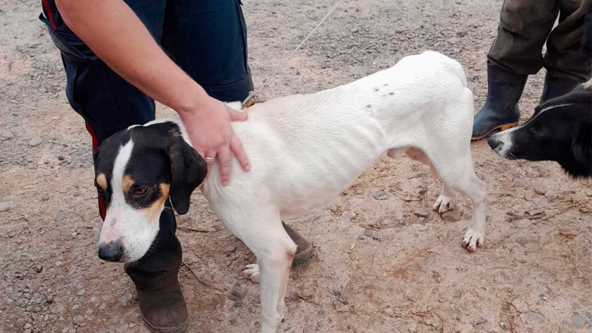 Após a montagem feita, a equipe desceu até o cão, que não estava agressivo e equipou o mesmo para o resgate.