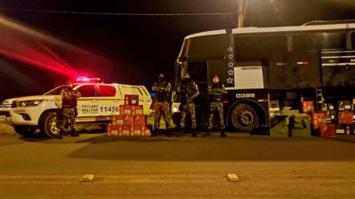 Na madrugada deste domingo, dia 12, após denúncia anônima, uma guarnição da Força Tática do 8º Batalhão da Brigada Militar do Rio Grande do Sul, abordou um ônibus, em Osório, no bairro Encosta da Serra, na BR 101, quilômetro 01, que transportava cerca de 200 caixas de bebidas alcoólicas sem procedência.