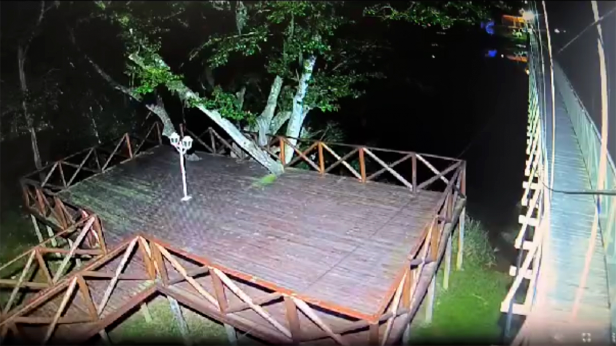 "Na noite desta quinta para sexta-feira, dia 07, a câmera de segurança do deck ao lado ponte de arame da Barranca sofreu taque de vândalos.