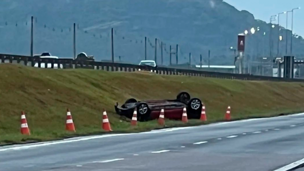 Um Capotamento em Araranguá na madrugada de sexta-feira Santa, com dois ocupantes, movimentou a equipe de resgate da CCR.