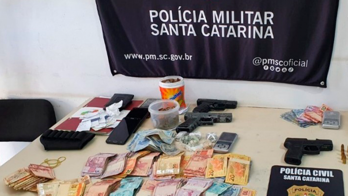 A ação resultou na apreensão de 17,5 gramas de crack, 75,3 gramas de maconha, 14,4 gramas de cocaína, R$ 6,4 mil em dinheiro, duas balanças de precisão, dois simulacros (imitação) de arma de fogo, uma pistola de calibre 9mm com registro de furto, sete munições do mesmo calibre e quatro de calibre 12.