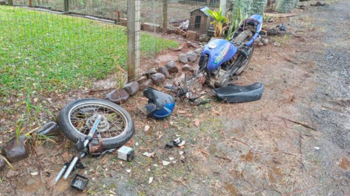 Com o forte impacto a moto ficou totalmente destruída e o automóvel teve a frente danificada. De acordo com os bombeiros, a vítima, Irio Bada, de 55 anos, que residia no bairro Cidade Alta em Turvo, estava deitada de bruços, inconsciente, politraumatizada, e apresentando fraturas nos braços, fraturas expostas nas duas pernas, fêmur e tíbia, ferimento na face com a perda de dentes, e ferimentos na região genital.