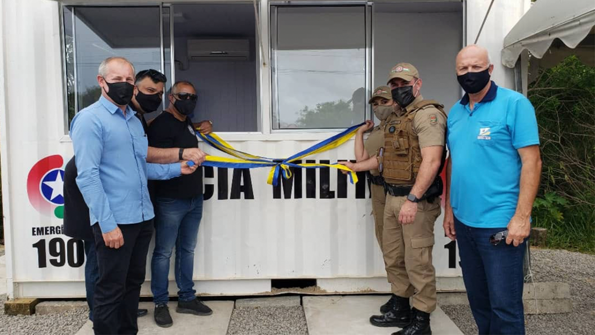 A Administração Municipal de Balneário Arroio do Silva realizou a entrega oficial do container adquirido para a Polícia Militar na manhã desta quinta-feira (23). O container foi instalado na entrada da cidade e será o novo posto de segurança e atuação dos militares. “Uma aquisição importante que nos permite oferecer melhores condições para a atuação da polícia militar que realiza um ótimo trabalho no município”, ressaltou o prefeito Evandro Scaini durante o ato.