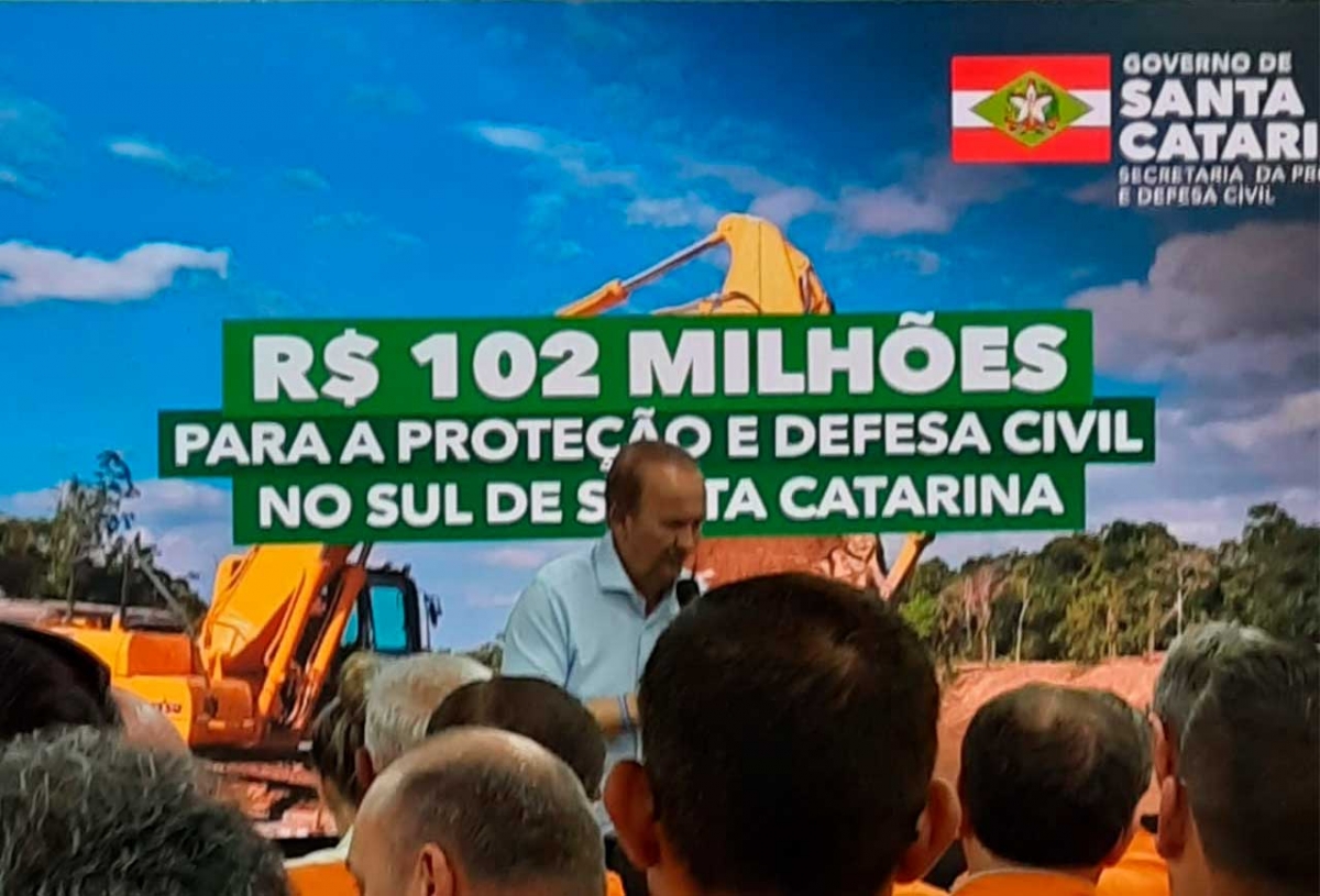 O coordenador da Defesa Civil de Araranguá, Afrânio Ronconi, participou nesta quarta-feira, dia 3, em Tubarão, do anúncio de um pacote histórico de investimentos em Proteção e Defesa Civil para a região Sul. A iniciativa foi apresentada pelo governador de Santa Catarina, Jorginho Mello, e pelo secretário de Estado da Proteção e Defesa Civil, Mário Hildebrandt.