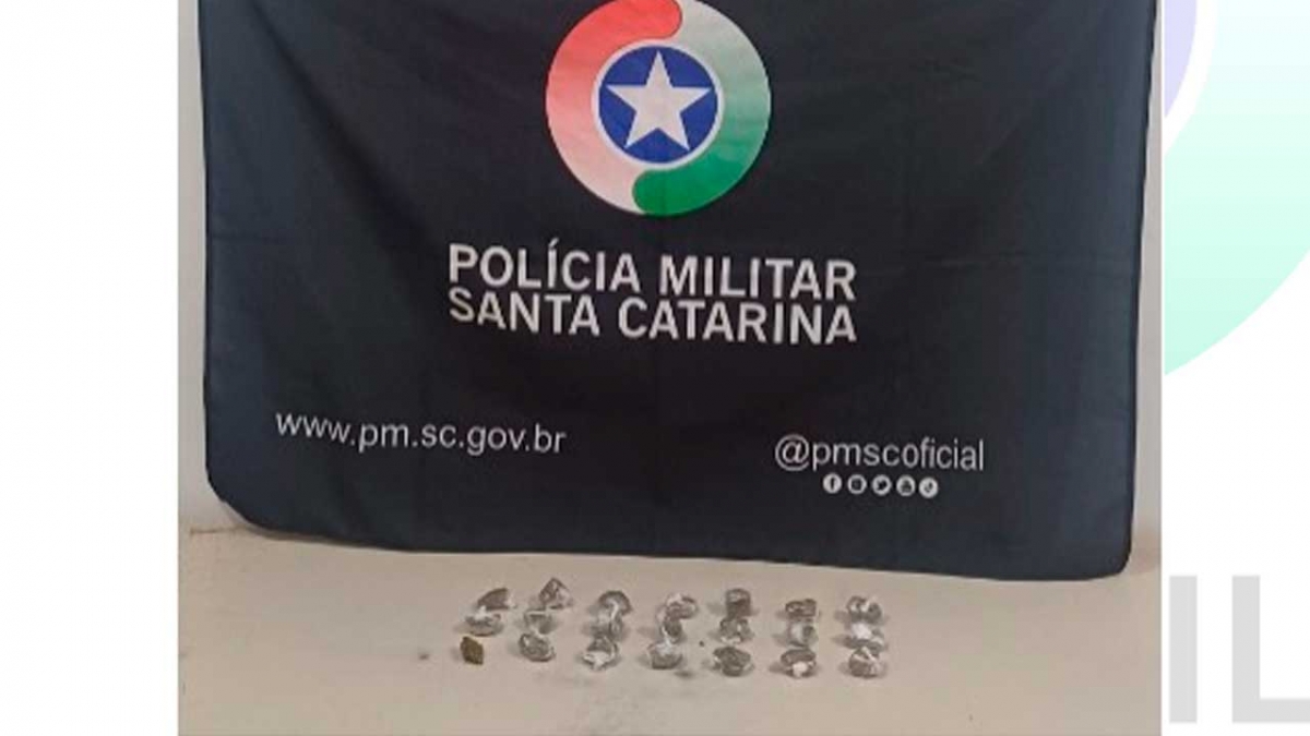 A guarnição se dirigiu até um terreno baldio próximo dali, onde encontrou 21 porções de uma substância semelhante à maconha, pesando cerca de 52,3 gramas.