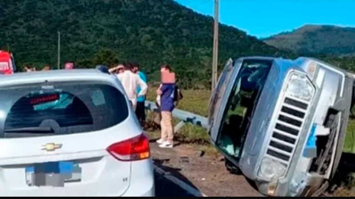 Um carro de passeio e mais três caminhonetes se envolveram na colisão.
