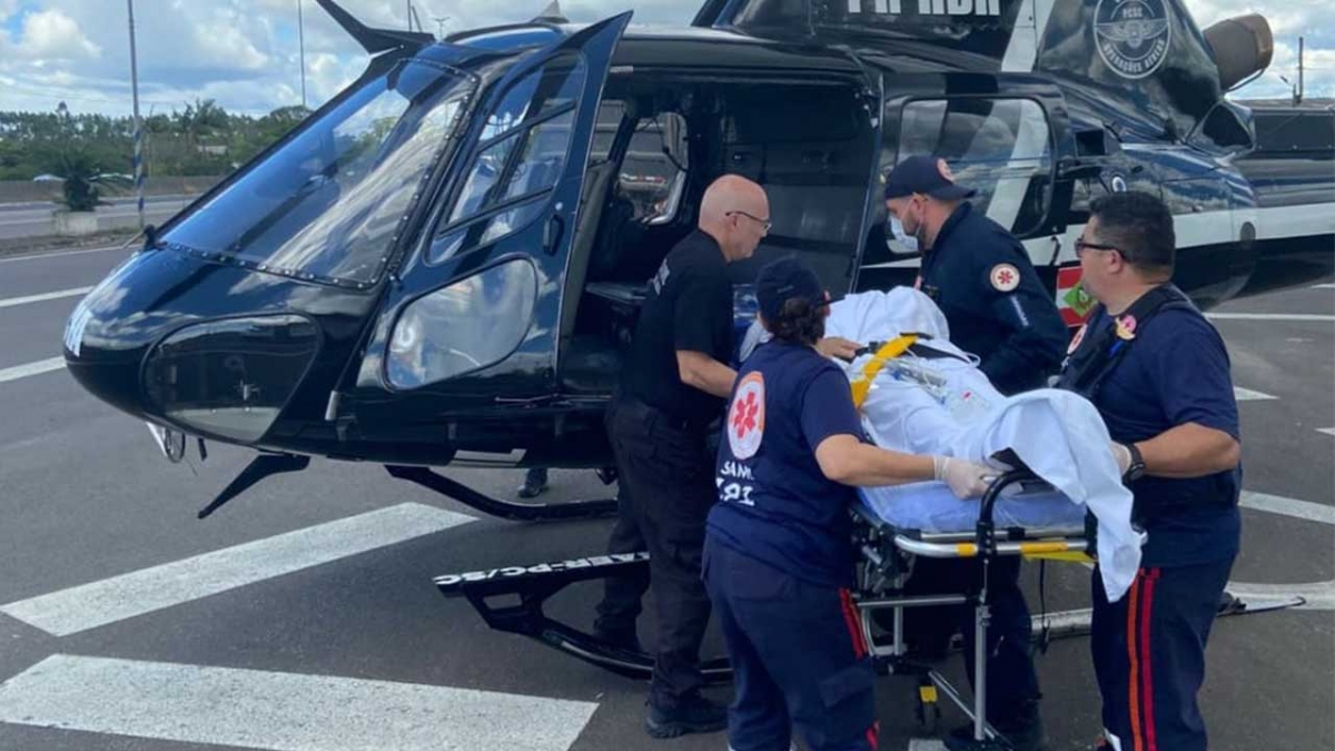 O paciente foi avaliado e direcionado de aeronave ao município de Criciúma, Hospital São José, referência em neurologia na região.