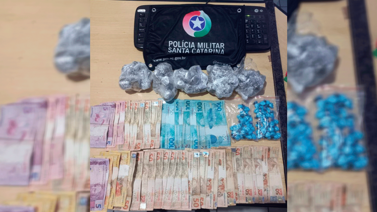 A PM apreendeu no interior da residência R$ 2.555,00 em dinheiro dividido em várias cédulas, 56 doses de cocaína e 484 gramas de maconha, que foram encontrados enterrados nos fundos da residência. No mesmo imóvel, a polícia apreendeu três bicicletas de procedência desconhecida, dois celulares e um triturador.