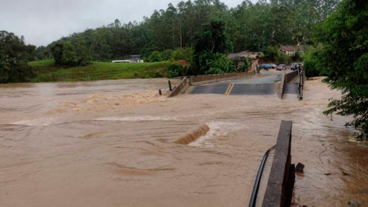 O volume de chuvas e a elevação dos rios no Sul de Santa Catarina interditaram mais duas rodovias estaduais na região. Em São Martinho, a força das águas do Rio Capivari carregaram a cabeceira da ponte do KM 22,3 da SC-436.