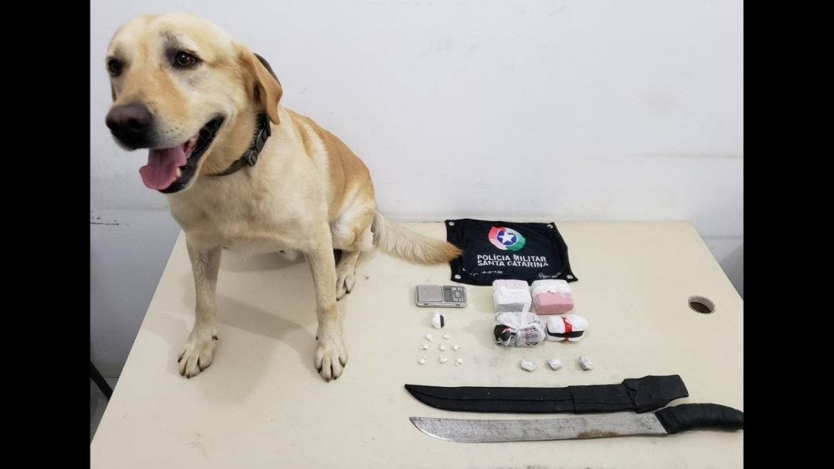Diante dos fatos já relatados e da possibilidade de haver mais drogas na residência, foi solicitado apoio do canil de Criciúma.