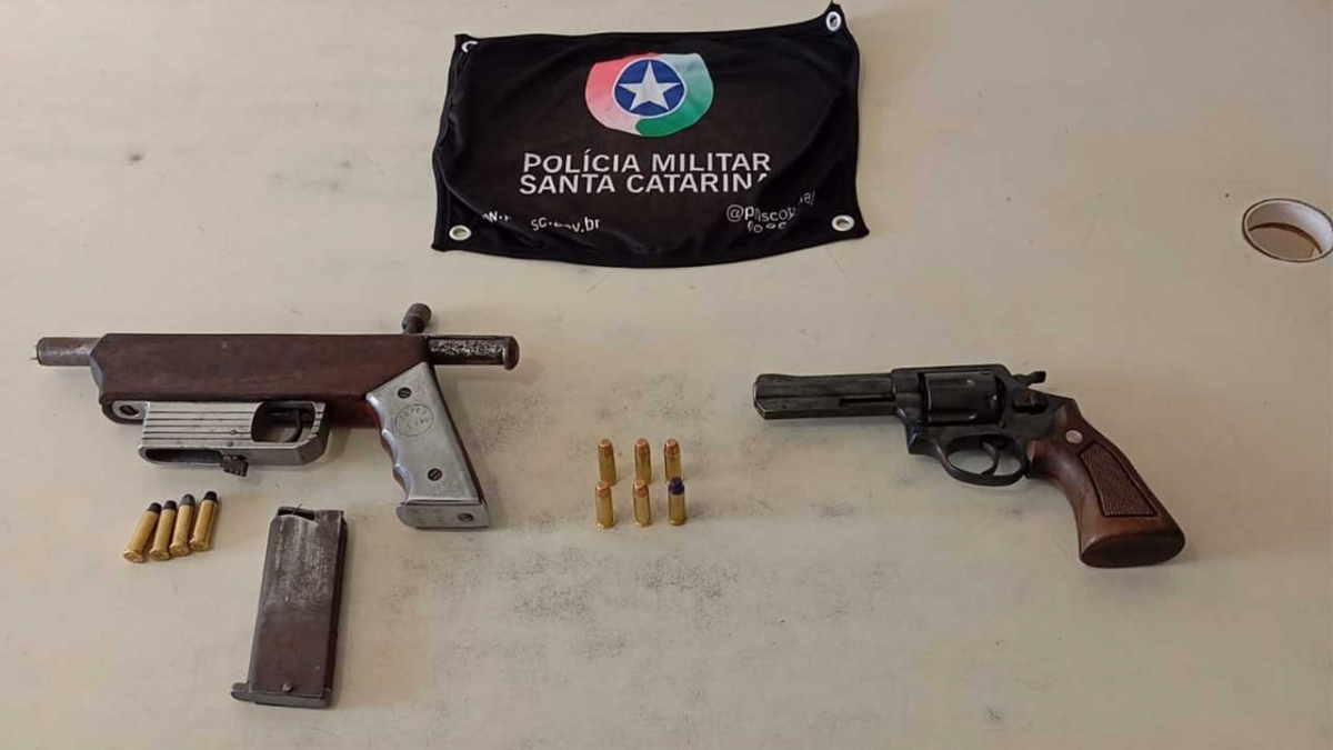 Durante buscas, foi encontrado um revólver calibre .38, com 10 munições.
