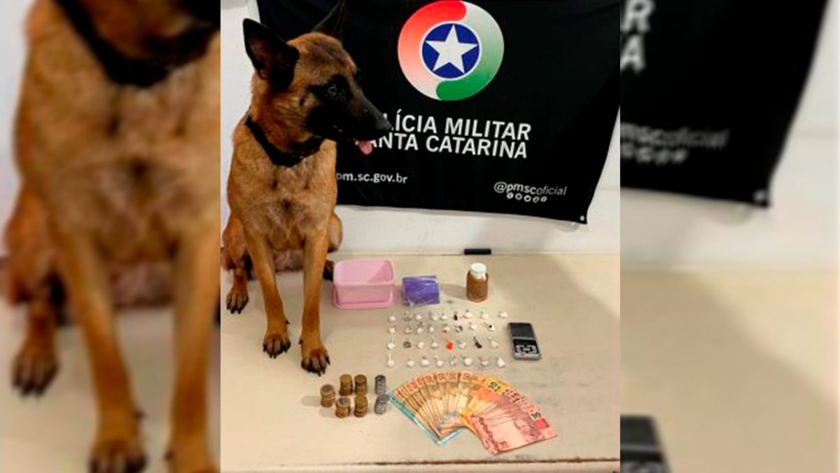 Mas o rapaz foi abordado no interior do banheiro com um pote contendo 11 buchas de cocaína e um torrão de maconha. Durante a ação a guarnição pediu o apoio das guarnições do tático e do canil k9. Em buscas no interior da casa o cão Luna que é treinado para este tipo de operação localizou dentro de outra gaveta da pia mais 22 buchas de cocaína, embaladas e prontas para a venda, bem como uma balança de precisão.
