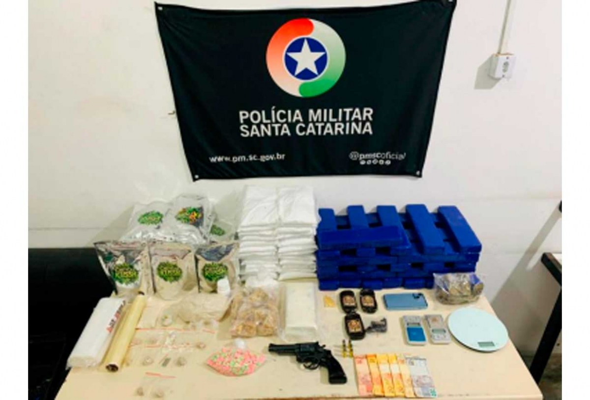 Uma ação conjunta da ROCAM e da guarnição do Tático resultou na apreensão de uma grande quantidade de drogas e na prisão de um jovem de 24 anos na noite deste domingo (30), no bairro Mato Alto, em Araranguá. A ocorrência foi registrada às 18h39.
