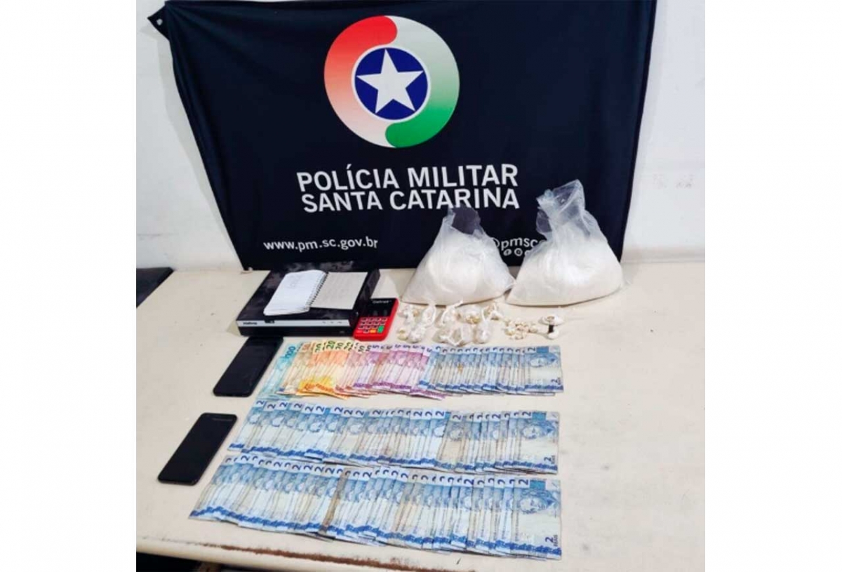 Com as informações, a guarnição cercou o terreno e iniciou buscas simultâneas nas residências. Um dos suspeitos tentou fugir pulando o muro, mas foi detido carregando dinheiro e porções de crack. No total, foram apreendidos 75,82g de crack, 11,69g de cocaína, além de outras porções da droga com o homem detido, aparelhos celulares, máquina de cartão, um caderno com anotações do tráfico, cerca de 2kg de ácido bórico, utilizado na mistura da cocaína — e dinheiro em espécie.