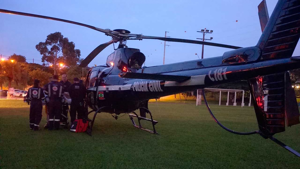 Ela foi transfgerida de helicóptero para o Hospital São José em Criciúma, que é referência em trauma.