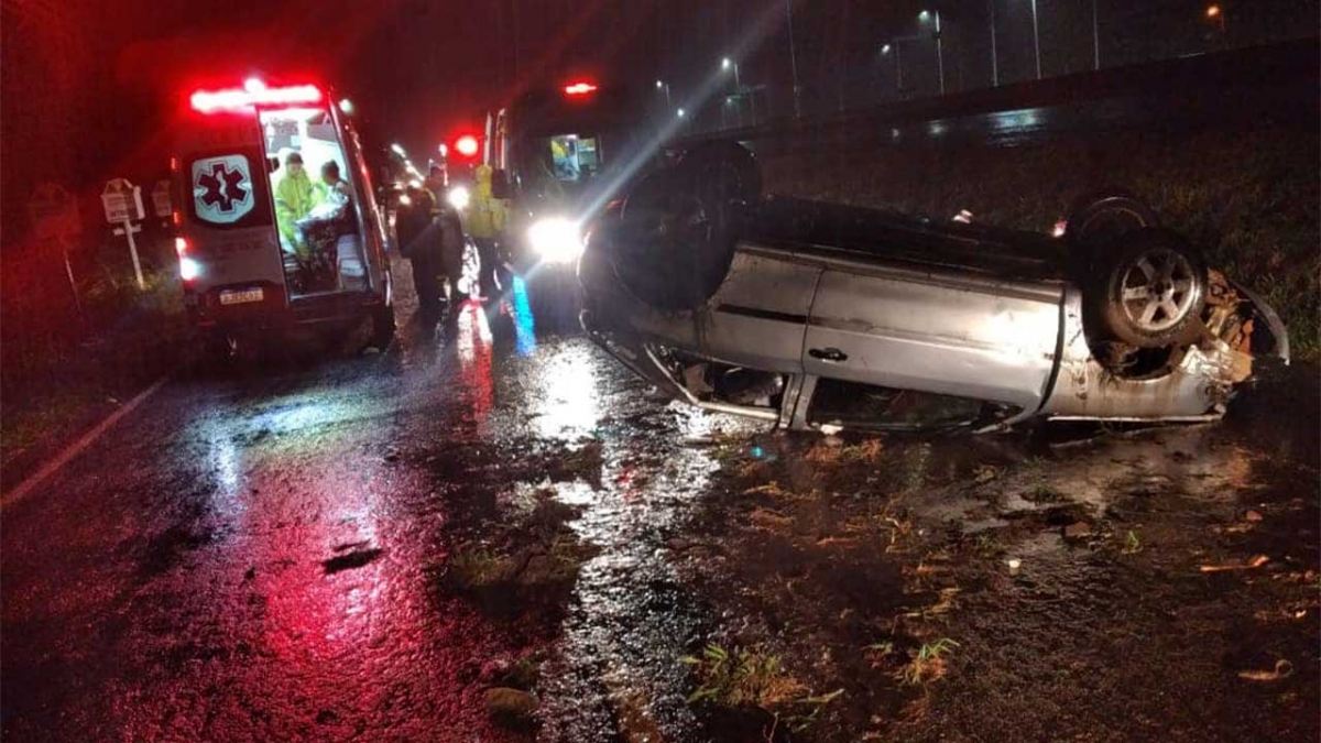 Na noite de sábado, 11, por volta das 22h, o Corpo de Bombeiros foi acionado pelo COBOM para atender uma saída de pista seguida de capotamento na Marginal da Br-101 no bairro Santa Catarina em Araranguá.