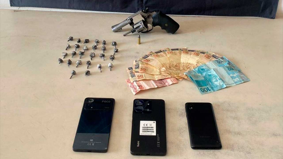 Durante a abordagem, um revólver calibre 32, municiado, bem como uma pequena quantidade de cocaína foram encontrados com o suspeito.
