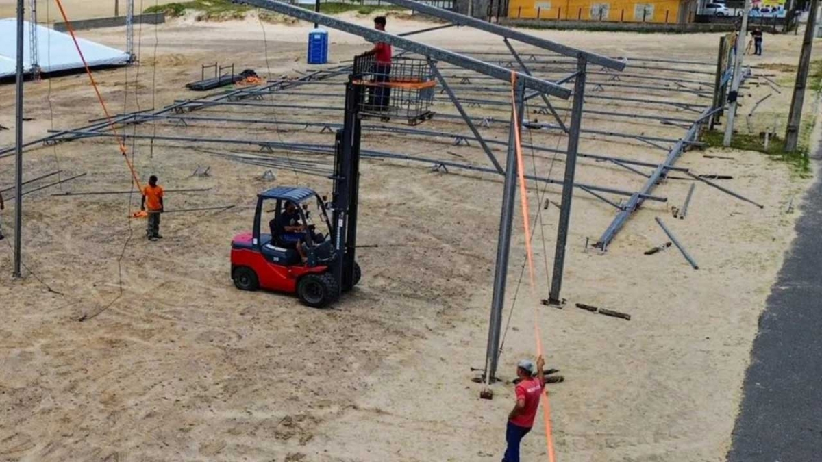 A menos de uma semana do início do evento, a estrutura da Arena Planeta Verão já começa a ser montada no Parque de Arrancadas, em Balneário Arroio do Silva.