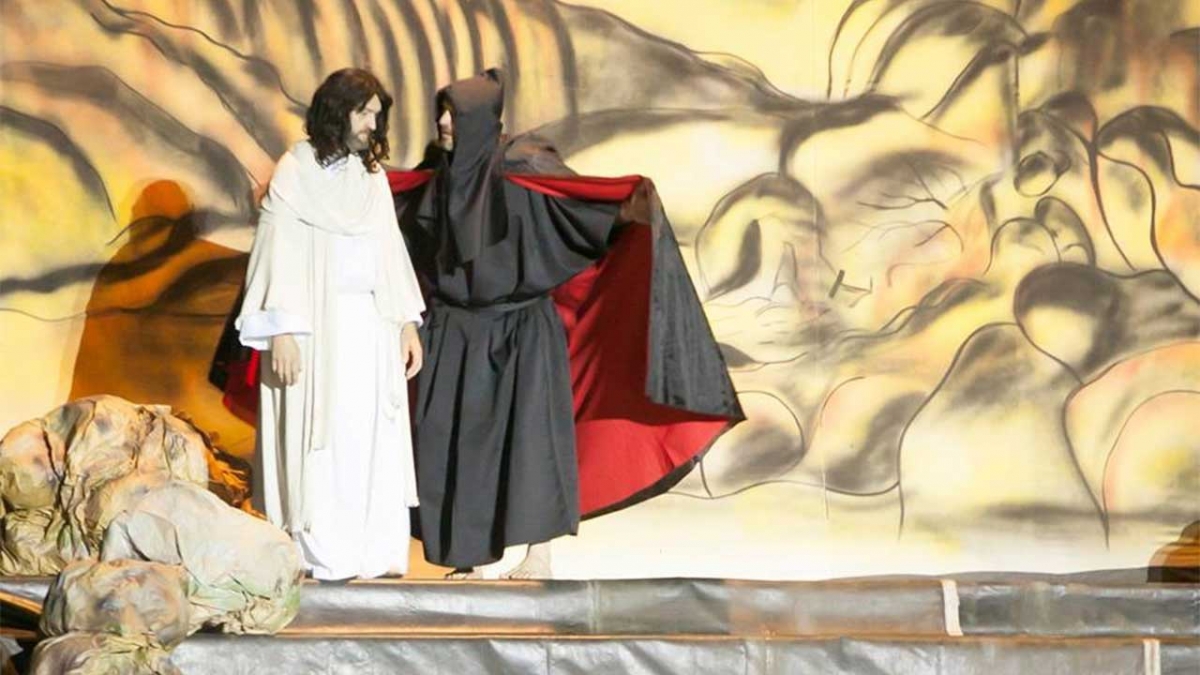 Na encenação são apresentadas 17 cenas, divididas em 7 cenários, com atores que são: agricultores, comerciantes, aposentados, estudantes, professores, eletricistas, músicos e donas de casa, que se vestem com os personagens que estiveram mais próximos de Jesus Cristo, na chamada via sacra, como: Discípulos, Maria (mãe de Jesus), Maria Madalena, Simão o Cireneu, Barrabás, Escribas, Anjos, ladrões, Pilatos e o povo. Outros voluntários também atuam nos bastidores, som e iluminação.