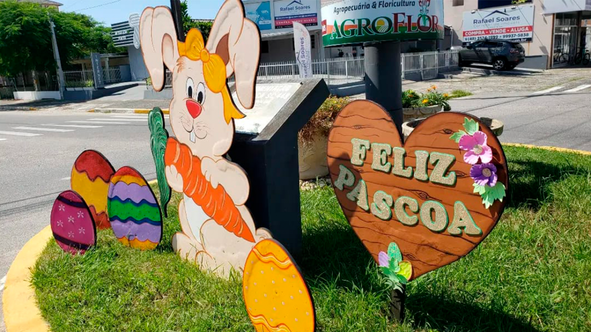 Os coelhinhos dão as boas-vindas aos dias que antecedem à páscoa. A decoração, que chama a atenção e encanta quem passa pelos locais, foi feita pela equipe da secretaria municipal de educação de Balneário Arroio do Silva que, com muito talento e carinho, destacou os principais acessos do município.