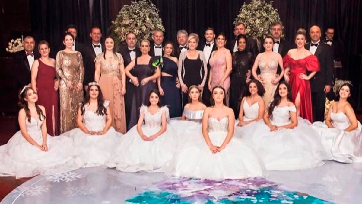 A noite de gala realizada no último dia 4 de Novembro não poderia ser diferente. O Clube Grêmio Fronteira foi palco de oito belíssimas Debutantes que abrilhantaram a grande noite. Na foto, a diretoria do Clube e os patronos Roberto Gallo e Rosane Gallo.