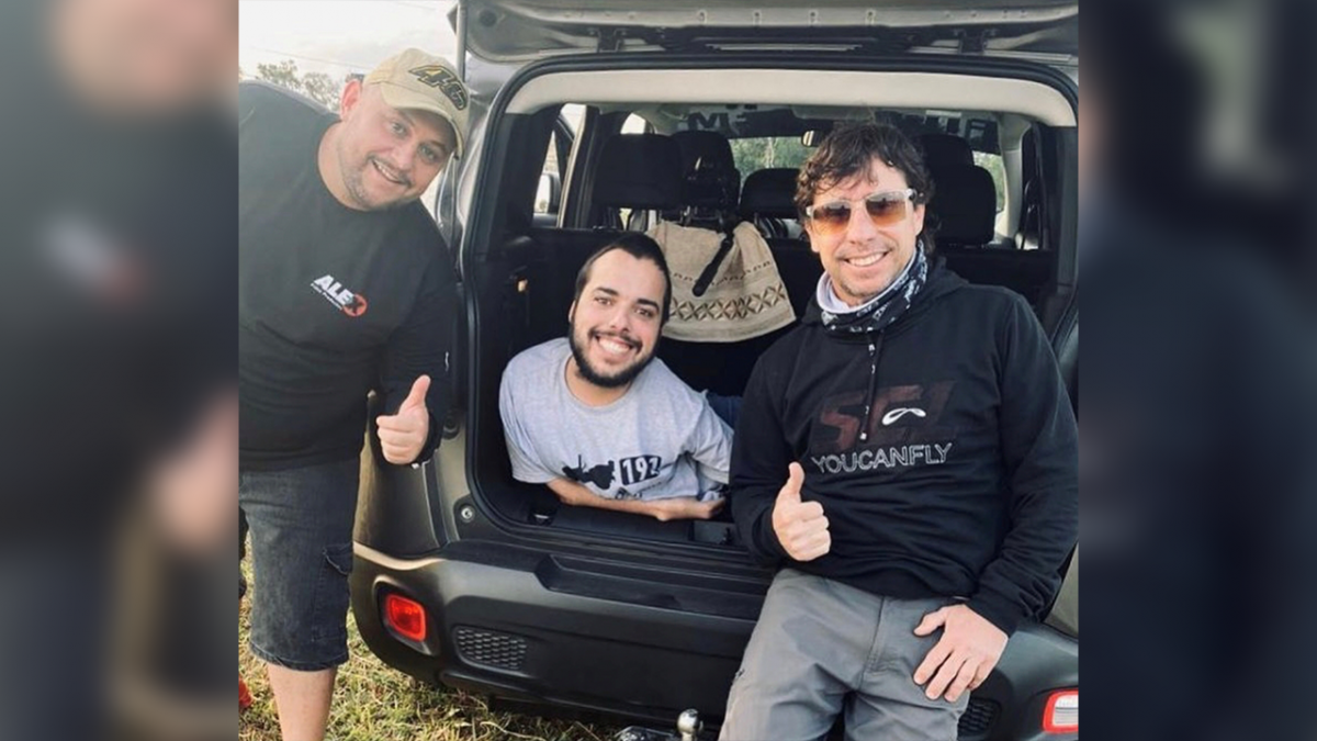 Na última semana o Sabiá, recordista mundial, apresentador do Canal Off um apaixonado pelos ares visitou Araranguá, e quem acompanhou seus voos de balão foi o competente Alex Vídeo Produções, na foto com Adriano Mota e o simpático e apaixonado por adrenalina Sabiá.