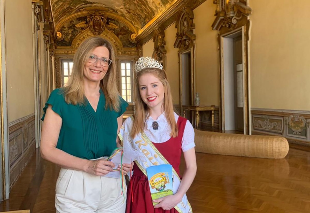 Assistam o vídeo da rainha da 24ª Festa do Colono de Turvo, Dandara Lodetti e da primeira-dama, Luci Zilli conhecendo a Itália e levando o nome da cidade ao país que originou a história Turvense. A viagem foi premiação oferecida pessoalmente pelo prefeito, Tiago Zilli. Nesta quinta-feira, elas estiveram no Consulado Geral do Brasil em Roma, onde entregaram lembranças de Turvo e o folder da festa. Dandara e Luci foram recebidas pela secretaria do Centro Cultural do Consulado, Cristiane Pelegrini.